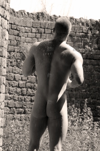 Model_1011, 20s, 30s, nass, wet, mouillé, mojado, Sprühregen, spray, bruine, brizna, spray, Wasser, water, eau, agua, wasserfall, waterfall, cascade, cascada, Körperpflege, Körper, Pflege, bodycare, body, care, soin, corps, higiene, cuerpo, waschen, wash, laver, lavar, duschen, shower, doucher, ducharse, lächeln, smile, sourire, sonreir, sonrisa, Nackt, naked, buff, nude, undressed, unclothed, bare, nu, desnudo, pelotas, wand, wall, mur, paroi, pared, Hüfte, Gesäss, Arsch, bottom, butt, bum, buttocks, breech, as, cul, fesses, nargas, culo, Rücken, back, dos, espalda, dorso, aussen, draussen, outdoor, outside, exterior, external, extérieur, fuera, allein, alone, seul, solo, athlet, athlete, athlète, atleta, athletisch, athletic, athlétique, atlético, pose, posing, pose, poser, posa, posar, Mann, man, male, mâle, homme, hombre, macho, erotik, eroticism, érotisme, charme, erotismo, erotisch, erotic, érotique, erótico, haut, skin, peau, piel, hübsch, muskel, muscle, musculo, sinnlich, sensual, sensuel, Bodybuilder, body, builder, muscleman, Kraftsportler, Muskelmann, culturiste, culturista, cachas, kaukasisch, caucasian, caucasien, caucasiano,