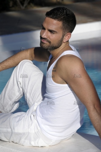 Model_1343, 20s, Ruhe, Entspannung, rest, relaxation, repos, détente, descanso, relajamiento, Hemd, shirt, chemise, camisa, blau, blue, bleu, azúl, Wasser, water, eau, agua, Schwimmbecken, Schwimmbad, pool, piscine, piscina, Leinen, linen, lien, toile, lienzo, lino, Schatten, shadow, ombre, sombra, Leinen, linen, lien, toile, lienzo, lino, Hose, trousers, pantalons, pantalones, weiss, white, blanc, blanco, Tätowierung, tattoo, tatouage, tatuaje, Brusthaare, Brustbehaarung, hairy, chest, hair, torse, poilu, tronco, peludo, velloso, gesichtsbehaarung, bart, schnauz, schnauzer, drei, tage, bart, facial, hair, pilosité, faciale, moustache, barbe, barbouze, barba, bigote, Brust, Brustkorb, Brustmuskulatur, chest, pecs, pectoraux, pectorales, Arm, bras, brazo, allein, alone, seul, solo, aussen, draussen, outdoor, outside, exterior, external, extérieur, fuera, athlet, athlete, athlète, atleta, athletisch, athletic, athlétique, atlético, mann, man, male, mâle, homme, hombre, macho, erotik, eroticism, érotisme, charme, erotismo, haut, skin, peau, piel, modell, model, modèle, modelo, pose, posing, pose, poser, posa, posar, sinnlichkeit, sensuality, sensualité, sensualidad, voluptuosidad, kaukasisch, caucasian, caucasien, caucasiano, mediteran, mediterranean, méditérranéen, mediteraneo, Lateinamerikanisch, Lateinamerikaner, LatinAmerican, Hispanic, LatinoAméricain, Hispano, Hispanoaméricano, Latinoaméricano,