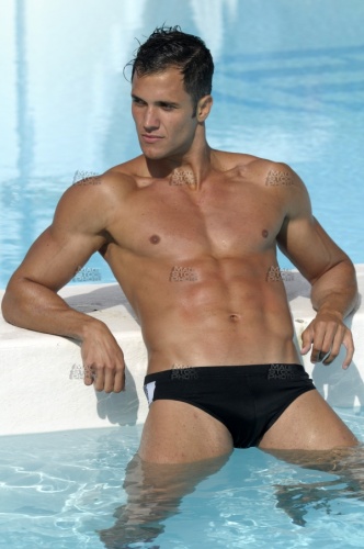 Model_1346, 20s, 30s, weiss, white, blanc, blanco, mauer, wand, wall, mur, muraille, paroi, pared, muro, Badehose, badeanzug, swimwear, sim, wear, swimming, trunks, suit, maillot, bain, trusa, baño, Arm, bras, brazo, brust, brustkorb, brustmuskulatur, chest, pecs, pectoraux, pectorales, Waschbrettbauch, six, pack, Sixpack, sickpacks, abdominals, abs, abdominaux, abdominales, Oberkörper, nackt, shirtless, topless, torse, nu, busto, desnudo, Kontrast, contrast, contraste, Schatten, shadow, ombre, sombra, blau, blue, bleu, azúl, Wasser, water, eau, agua, Schwimmbecken, Schwimmbad, pool, piscine, piscina, allein, alone, seul, solo, aussen, draussen, outdoor, outside, exterior, external, extérieur, fuera, athlet, athlete, athlète, atleta, athletisch, athletic, athlétique, atlético, Bodybuilder, body, builder, muscleman, Kraftsportler, Muskulös, muscular, musclé, musculoso, Muskelmann, culturiste, culturista, cachas, mann, man, male, mâle, homme, hombre, macho, erotik, eroticism, érotisme, charme, erotismo, haut, skin, peau, piel, modell, model, modèle, modelo, sinnlichkeit, sensuality, sensualité, sensualidad, voluptuosidad, kaukasisch, caucasian, caucasien, caucasiano, Hispanic, LatinoAméricain, Hispano, Hispanoaméricano, Latinoaméricano,