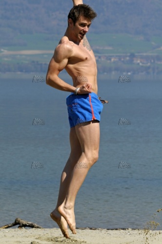 Model_1347, 20s, verspielt, frisky, badin, chistoso, Sand, sable, arena, Spaß, Fun, plaisir, diversión, lebensfreude, groove, joie, vivre, alegría, vivir, springen, jump, sault, sauter, saltar, blau, blue, bleu, azúl, badehose, badeanzug, swimwear, sim, wear, swimming, trunks, suit, maillot, bain, trusa, baño, Shorts, Oberkörper, nackt, shirtless, topless, torse, nu, busto, desnudo, Tätowierung, tattoo, tatouage, tatuaje, Gesichtsbehaarung, Bart, Schnauz, Schnauzer, drei, Tage, Bart, facial, hair, pilosité, faciale, moustache, barbe, barbouze, barba, bigote, See, lake, lac, lago, Meer, sea, mer, mar, Wasser, water, eau, agua, aussen, draussen, outdoor, outside, exterior, external, extérieur, fuera, allein, alone, seul, solo, athlet, athlete, athlète, atleta, athletisch, athletic, athlétique, atlético, schlank, slim, slender, mince, delgado, Mann, man, male, mâle, homme, hombre, macho, erotik, eroticism, érotisme, charme, erotismo, erotisch, erotic, érotique, erótico, haut, skin, peau, piel, muskel, muscle, musculo, sinnlich, sensual, sensuel, kaukasisch, caucasian, caucasien, caucasiano,