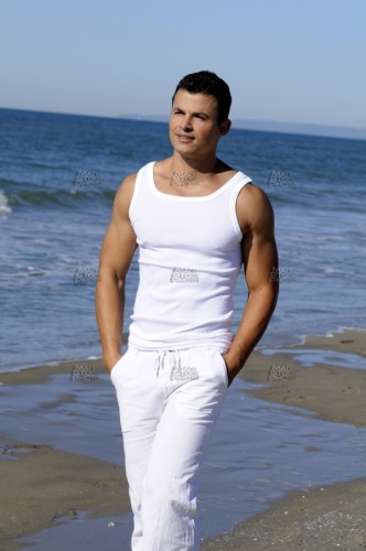 Model_1372, 20s, tanktop, Pose, Posing, pose, poser, posa, posar, kontrast, contrast, contraste, schatten, shadow, ombre, sombra, Leinen, linen, lien, toile, lienzo, lino, weiss, white, blanc, blanco, pantalons, pantalones, wasser, water, eau, agua, meer, sea, mer, mar, Sand, sable, arena, Strand, beach, plage, playa, Horizont, horizon, horizonte, brust, brustkorb, brustmuskulatur, chest, pecs, pectoraux, pectorales, Waschbrettbauch, six, pack, Sixpack, sickpacks, abdominals, abs, abdominaux, abdominales, Oberkörper, nackt, shirtless, topless, torse, nu, busto, desnudo, allein, alone, seul, solo, aussen, draussen, outdoor, outside, exterior, external, extérieur, fuera, athlet, athlete, athlète, atleta, athletisch, athletic, athlétique, atlético, Bodybuilder, body, builder, muscleman, Kraftsportler, Muskelmann, culturiste, culturista, cachas, mann, man, male, mâle, homme, hombre, macho, boy, guy, stud, hunk, dude, mec, chico, form, shape, forme, forma, haut, skin, peau, piel, körperlich, physical, corporelle, corporal, männlichkeit, masculinity, masculinité, virilité, masculinidad, virilidad, modell, model, modèle, modelo, muskel, muscle, musculo, muskulös, muscular, musclé, musculoso, sinnlichkeit, sensuality, sensualité, sensualidad, voluptuosidad, caucasian, caucasien, caucásico, Lateinamerikanisch, Lateinamerikaner, LatinAmerican, Hispanic, LatinoAméricain, Hispano, Hispanoaméricano, Latinoaméricano,