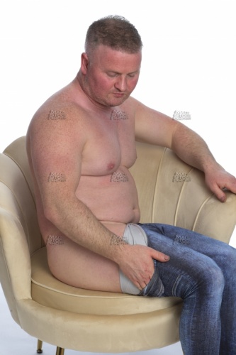 Model_1415, 30s, Ruhe, Entspannung, rest, relaxation, repos, détente, descanso, relajamiento, ausziehen, undressing, take, off, deshabiller, desnudar, quitarse, schlau, gewitzt, smart, futé, malin, listo, Sessel, chair, armchair, fauteuil, sillón, Schwarz, black, noir, negro, Jeans, jean, vaqueros, Oberkörper, nackt, shirtless, topless, torse, nu, busto, desnudo, Brust, Brustkorb, Brustmuskulatur, chest, pecs, pectoraux, pectorales, Hintergrund, background, arrièreplan, fond, fondo, trasfondo, weiss, white, blanc, blanco, Studio, estudio, innen, im, Haus, Hause, indoor, dedans, intérieur, interior, interno, allein, alone, seul, solo, athlet, athlete, athlète, atleta, athletisch, athletic, athlétique, atlético, Muskulös, muscular, musclé, musculoso, Bodybuilder, body, builder, muscleman, Kraftsportler, Muskelmann, culturiste, culturista, cachas, mann, man, male, mâle, homme, hombre, macho, erotik, eroticism, érotisme, charme, erotismo, erotisch, erotic, érotique, erótico, form, shape, forme, forma, haut, skin, peau, piel, modell, model, modèle, modelo, pose, posing, pose, poser, posa, posar, sinnlichkeit, sensuality, sensualité, sensualidad, voluptuosidad, kaukasisch, caucasian, caucasien, caucasiano,