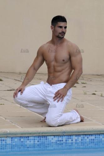 Model_1380, 20s, 30s, brust, brustkorb, brustmuskulatur, chest, pecs, pectoraux, pectorales, waschbrettbauch, six, pack, sixpack, sickpacks, abdominals, abs, abdominaux, abdominales, Verträumt, dreaming, rêvant, soñando, barfuss, barefoot, pied, nu, descalzo, Ruhe, Entspannung, rest, relaxation, repos, détente, descanso, relajamiento, gesichtsbehaarung, bart, schnauz, schnauzer, drei, tage, bart, facial, hair, pilosité, faciale, moustache, barbe, barbouze, barba, bigote, Oberkörper, nackt, shirtless, topless, torse, nu, busto, desnudo, Pose, Posing, pose, poser, posa, posar, arm, bras, brazo, Leinen, linen, lien, toile, lienzo, lino, Hose, trousers, pantalons, pantalones, Kontrast, contrast, contraste, weiss, white, blanc, blanco, steinplatte, flag, flagstone, dalle, laja, lancha, losa, mauer, wand, wall, mur, muraille, paroi, pared, muro, wasser, water, eau, agua, schwimmbecken, schwimmbad, pool, piscine, piscina, blau, blue, bleu, azúl, allein, alone, seul, solo, aussen, draussen, outdoor, outside, exterior, external, extérieur, fuera, athlet, athlete, athlète, atleta, athletisch, athletic, athlétique, atlético, bodybuilder, body, builder, muscleman, kraftsportler, muskelmann, culturiste, culturista, cachas, mann, man, male, mâle, homme, hombre, macho, boy, guy, stud, hunk, dude, mec, chico, form, shape, forme, forma, haut, skin, peau, piel, körperlich, physical, corporelle, corporal, männlichkeit, masculinity, masculinité, virilité, masculinidad, virilidad, modell, model, modèle, modelo, muskel, muscle, musculo, muskulös, muscular, musclé, musculoso, sinnlichkeit, sensuality, sensualité, sensualidad, voluptuosidad, caucasian, caucasien, caucásico, mediteran, mediterranean, méditérranéen, mediteraneo, italo,
