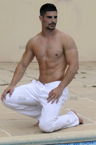Model_1380, 20s, 30s, brust, brustkorb, brustmuskulatur, chest, pecs, pectoraux, pectorales, waschbrettbauch, six, pack, sixpack, sickpacks, abdominals, abs, abdominaux, abdominales, Verträumt, dreaming, rêvant, soñando, barfuss, barefoot, pied, nu, descalzo, Ruhe, Entspannung, rest, relaxation, repos, détente, descanso, relajamiento, gesichtsbehaarung, bart, schnauz, schnauzer, drei, tage, bart, facial, hair, pilosité, faciale, moustache, barbe, barbouze, barba, bigote, Oberkörper, nackt, shirtless, topless, torse, nu, busto, desnudo, Pose, Posing, pose, poser, posa, posar, arm, bras, brazo, Leinen, linen, lien, toile, lienzo, lino, Hose, trousers, pantalons, pantalones, Kontrast, contrast, contraste, weiss, white, blanc, blanco, steinplatte, flag, flagstone, dalle, laja, lancha, losa, mauer, wand, wall, mur, muraille, paroi, pared, muro, wasser, water, eau, agua, schwimmbecken, schwimmbad, pool, piscine, piscina, blau, blue, bleu, azúl, allein, alone, seul, solo, aussen, draussen, outdoor, outside, exterior, external, extérieur, fuera, athlet, athlete, athlète, atleta, athletisch, athletic, athlétique, atlético, bodybuilder, body, builder, muscleman, kraftsportler, muskelmann, culturiste, culturista, cachas, mann, man, male, mâle, homme, hombre, macho, boy, guy, stud, hunk, dude, mec, chico, form, shape, forme, forma, haut, skin, peau, piel, körperlich, physical, corporelle, corporal, männlichkeit, masculinity, masculinité, virilité, masculinidad, virilidad, modell, model, modèle, modelo, muskel, muscle, musculo, muskulös, muscular, musclé, musculoso, sinnlichkeit, sensuality, sensualité, sensualidad, voluptuosidad, caucasian, caucasien, caucásico, mediteran, mediterranean, méditérranéen, mediteraneo, italo,