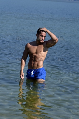 Model_1387, 20s, Spiegelung, reflex, reflet, reflejo, profil, profile, perfil, orange, naranja, shorts, blau, blue, bleu, azúl, badehose, badeanzug, swimwear, sim, wear, swimming, trunks, suit, maillot, bain, trusa, baño, wassertropfen, waterdrop, goutte, eau, gota, agua, nass, wet, mouillé, mojado, arm, bras, brazo, gesichtsbehaarung, bart, schnauz, schnauzer, drei, tage, bart, facial, hair, pilosité, faciale, moustache, barbe, barbouze, barba, bigote, oberkörper, nackt, shirtless, topless, torse, nu, busto, desnudo, kontrast, contrast, contraste, schatten, shadow, ombre, sombra, pose, posing, pose, poser, posa, posar, brust, brustkorb, brustmuskulatur, chest, pecs, pectoraux, pectorales, wasser, water, eau, agua, meer, sea, mer, mar, see, lake, lac, lago, aussen, draussen, outdoor, outside, exterior, external, extérieur, fuera, allein, alone, seul, solo, athlet, athlete, athlète, atleta, athletisch, athletic, athlétique, atlético, mann, man, male, mâle, homme, hombre, macho, muskulös, muscular, musclé, musculoso, muskel, muscle, musculo, erotik, eroticism, érotisme, charme, erotismo, haut, skin, peau, piel, modell, model, modèle, modelo, kaukasisch, caucasian, caucasien, caucasiano,