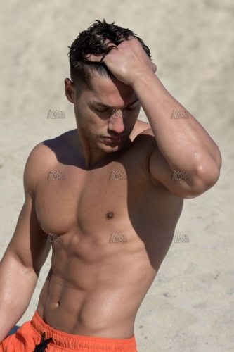 Model_1387, 20s, shorts, orange, badehose, badeanzug, swimwear, sim, wear, swimming, trunks, suit, maillot, bain, trusa, baño, wassertropfen, waterdrop, goutte, eau, gota, agua, nass, wet, mouillé, mojado, arm, bras, brazo, gesichtsbehaarung, bart, schnauz, schnauzer, drei, tage, bart, facial, hair, pilosité, faciale, moustache, barbe, barbouze, barba, bigote, ruhe, entspannung, rest, relaxation, repos, détente, descanso, relajamiento, oberkörper, nackt, shirtless, topless, torse, nu, busto, desnudo, kontrast, contrast, contraste, schatten, shadow, ombre, sombra, pose, posing, pose, poser, posa, posar, strand, beach, plage, playa, sand, sable, arena, Waschbrettbauch, six, pack, Sixpack, sickpacks, abdominals, abs, abdominaux, abdominales, brust, brustkorb, brustmuskulatur, chest, pecs, pectoraux, pectorales, allein, alone, seul, solo, athlet, athlete, athlète, atleta, athletisch, athletic, athlétique, atlético, mann, man, male, mâle, homme, hombre, macho, muskulös, muscular, musclé, musculoso, muskel, muscle, musculo, erotik, eroticism, érotisme, charme, erotismo, haut, skin, peau, piel, modell, model, modèle, modelo, kaukasisch, caucasian, caucasien, caucasiano, aussen, draussen, outdoor, outside, exterior, external, extérieur, fuera,