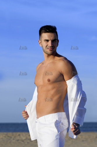 Model_1391, 20s, ausziehen, undressing, take, off, deshabiller, desnudar, quitarse, Hemd, shirt, chemise, camisa, blau, blue, bleu, azúl, Horizont, horizon, horizonte, wasser, water, eau, agua, blau, blue, bleu, azúl, Meer, sea, mer, mar, strand, beach, plage, playa, sand, sable, arena, Hose, trousers, pantalons, pantalones, Leinen, linen, lien, toile, lienzo, lino, weiss, white, blanc, blanco, Kontrast, contrast, contraste, Schatten, shadow, ombre, sombra, verspielt, frisky, badin, chistoso, pose, posing, pose, poser, posa, posar, Oberkörper, nackt, shirtless, topless, busto, desnudo, brust, brustkorb, brustmuskulatur, chest, pecs, pectoraux, pectorales, gesichtsbehaarung, bart, schnauz, schnauzer, drei, tage, bart, facial, hair, pilosité, faciale, moustache, barbe, barbouze, barba, bigote, pose, posing, pose, poser, posa, posar, aussen, outdoor, outside, exterior, external, extérieur, fuera, allein, alone, seul, solo, athlet, athlete, athlète, atleta, athletisch, athletic, athlétique, atlético, mann, man, male, mâle, homme, hombre, macho, muskulös, muscular, musclé, musculoso, muskel, muscle, musculo, erotik, eroticism, érotisme, charme, erotismo, haut, skin, peau, piel, modell, model, modèle, modelo, kaukasisch, caucasian, caucasien, caucasiano,