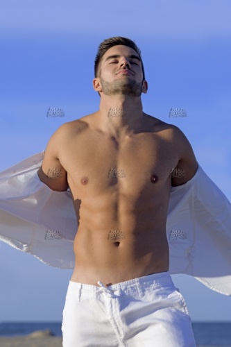 Model_1391, 20s, ausziehen, undressing, take, off, deshabiller, desnudar, quitarse, Hemd, shirt, chemise, camisa, blau, blue, bleu, azúl, Horizont, horizon, horizonte, wasser, water, eau, agua, blau, blue, bleu, azúl, Meer, sea, mer, mar, strand, beach, plage, playa, sand, sable, arena, Hose, trousers, pantalons, pantalones, Leinen, linen, lien, toile, lienzo, lino, weiss, white, blanc, blanco, Kontrast, contrast, contraste, Schatten, shadow, ombre, sombra, verspielt, frisky, badin, chistoso, pose, posing, pose, poser, posa, posar, Oberkörper, nackt, shirtless, topless, busto, desnudo, brust, brustkorb, brustmuskulatur, chest, pecs, pectoraux, pectorales, gesichtsbehaarung, bart, schnauz, schnauzer, drei, tage, bart, facial, hair, pilosité, faciale, moustache, barbe, barbouze, barba, bigote, pose, posing, pose, poser, posa, posar, aussen, outdoor, outside, exterior, external, extérieur, fuera, allein, alone, seul, solo, athlet, athlete, athlète, atleta, athletisch, athletic, athlétique, atlético, mann, man, male, mâle, homme, hombre, macho, muskulös, muscular, musclé, musculoso, muskel, muscle, musculo, erotik, eroticism, érotisme, charme, erotismo, haut, skin, peau, piel, modell, model, modèle, modelo, kaukasisch, caucasian, caucasien, caucasiano,