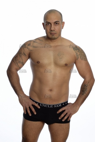 model_1392, 20s, Rasiert, shaved, rasé, afeitado, kahl, bold, chauve, calvo, Entschlossenheit, determination, détermination, empeño, tenacidad, Tätowierung, tattoo, tatouage, tatuaje, schwarz, black, noir, negro, unterhose, slip, unterwäsche, underwear, briefs, pants, shorts, underpants, caleçon, culottes, sousvêtements, ropa, interior, calzoncillo, pose, posing, pose, poser, posa, posar, oberkörper, torso, torse, tronco, nackt, naked, buff, nude, undressed, unclothed, bare, nu, desnudo, pelotas, brust, brustkorb, brustmuskulatur, chest, pecs, pectoraux, pectorales, mauer, wand, wall, mur, muraille, paroi, pared, muro, studio, estudio, hintergrund, background, arrièreplan, fond, fondo, trasfondo, allein, alone, seul, solo, innen, im, haus, hause, indoor, dedans, intérieur, interior, interno, Bodybuilding, Muskelaufbau, bodybuilding, building, culture, physique, físicocultura, Muskulös, muscular, musclé, musculoso, mann, man, male, mâle, homme, hombre, macho, modell, model, modèle, modelo, breit, strong, costeau, fuerte, italo, lateinamerikanisch, lateinamerikaner, latinamerican, hispanic, latinoaméricain, hispano, hispanoaméricano, latinoaméricano, kaukasisch, caucasian, caucasien, caucasiano, mediteran, mediterranean, méditérranéen, mediteraneo,