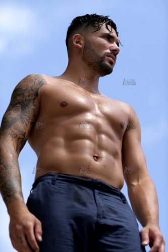 | model_1379, 20s, profil, profile, perfil, horizont, horizon, horizonte, waschbrettbauch, six, pack, sixpack, sickpacks, abdominals, abs, abdominaux, abdominales, brust, brustkorb, brustmuskulatur, chest, pecs, pectoraux, pectorales, oberkörper, nackt, shirtless, topless, torse, nu, busto, desnudo, blau, blue, bleu, azúl, leinen, linen, lien, toile, lienzo, lino, hose, trousers, pantalons, pantalones, sonnenbaden, sun, tanning, bask, lézarder, tomar, sol, tätowierung, tattoo, tatouage, tatuaje, gesichtsbehaarung, bart, schnauz, schnauzer, drei, tage, bart, facial, hair, pilosité, faciale, moustache, barbe, barbouze, barba, bigote, schweiss, sweat, sueur, sudor, wassertropfen, waterdrop, goutte, eau, gota, agua, pose, posing, pose, poser, posa, posar, schatten, shadow, ombre, sombra, tätowierung, tattoo, tatouage, tatuaje, kontrast, contrast, contraste, arm, bras, brazo, nass, wet, mouillé, mojado, allein, alone, seul, solo, aussen, draussen, outdoor, outside, exterior, external, extérieur, fuera, athlet, athlete, athlète, atleta, athletisch, athletic, athlétique, atlético, bodybuilder, body, builder, muscleman, kraftsportler, muskelmann, culturiste, culturista, cachas, mann, man, male, mâle, homme, hombre, macho, boy, guy, stud, hunk, dude, mec, chico, form, shape, forme, forma, haut, skin, peau, piel, körperlich, physical, corporelle, corporal, männlichkeit, masculinity, masculinité, virilité, masculinidad, virilidad, modell, model, modèle, modelo, muskel, muscle, musculo, muskulös, muscular, musclé, musculoso, sinnlichkeit, sensuality, sensualité, sensualidad, voluptuosidad, caucasian, caucasien, caucásico, mediteran, mediterranean, méditérranéen, mediteraneo, italo, | |