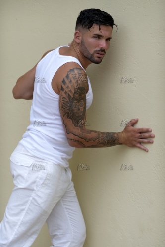 | model_1379, 20s, Kontraktion, contraction, contracción, Arm, bras, brazo, mauer, wand, wall, mur, muraille, paroi, pared, muro, Unterhemd, Trägerhemd, Muskelshirt, Tanktop, débardeur, camiseta, hautnah, close, tight, serré, apretado, cerca, weiss, white, blanc, blanco, hose, trousers, pantalons, pantalones, gesichtsbehaarung, bart, schnauz, schnauzer, drei, tage, bart, facial, hair, pilosité, faciale, moustache, barbe, barbouze, barba, bigote, Schweiss, sweat, sueur, sudor, wassertropfen, waterdrop, goutte, eau, gota, agua, pose, posing, pose, poser, posa, posar, schatten, shadow, ombre, sombra, kontrast, contrast, contraste, nass, wet, mouillé, mojado, Tätowierung, tattoo, tatouage, tatuaje, allein, alone, seul, solo, aussen, draussen, outdoor, outside, exterior, external, extérieur, fuera, athlet, athlete, athlète, atleta, athletisch, athletic, athlétique, atlético, bodybuilder, body, builder, muscleman, kraftsportler, muskelmann, culturiste, culturista, cachas, mann, man, male, mâle, homme, hombre, macho, boy, guy, stud, hunk, dude, mec, chico, form, shape, forme, forma, haut, skin, peau, piel, körperlich, physical, corporelle, corporal, männlichkeit, masculinity, masculinité, virilité, masculinidad, virilidad, modell, model, modèle, modelo, muskel, muscle, musculo, muskulös, muscular, musclé, musculoso, sinnlichkeit, sensuality, sensualité, sensualidad, voluptuosidad, caucasian, caucasien, caucásico, mediteran, mediterranean, méditérranéen, mediteraneo, italo, | |