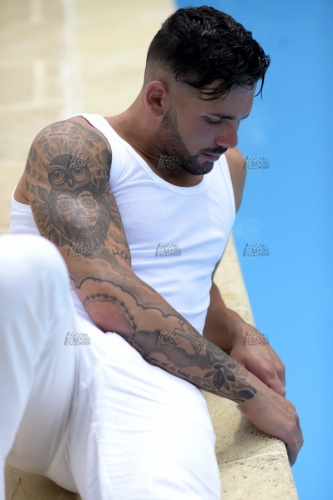 model_1379, 20s, Profil, profile, perfil, Verträumt, dreaming, rêvant, soñando, Unterhemd, Trägerhemd, Muskelshirt, Tanktop, débardeur, camiseta, hautnah, close, tight, serré, apretado, cerca, Ruhe, Entspannung, rest, relaxation, repos, détente, descanso, relajamiento, Schatten, shadow, ombre, sombra, sonnenbaden, sun, tanning, bask, lézarder, tomar, sol, geniessen, enjoy, réjouir, savourer, disfrutar, Pose, Posing, pose, poser, posa, posar, arm, bras, brazo, Leinen, linen, lien, toile, lienzo, lino, Hose, trousers, pantalons, pantalones, Kontrast, contrast, contraste, weiss, white, blanc, blanco, mauer, wand, wall, mur, muraille, paroi, pared, muro, wasser, water, eau, agua, schwimmbecken, schwimmbad, pool, piscine, piscina, blau, blue, bleu, azúl, gesichtsbehaarung, bart, schnauz, schnauzer, drei, tage, bart, facial, hair, pilosité, faciale, moustache, barbe, barbouze, barba, bigote, pose, posing, pose, poser, posa, posar, schatten, shadow, ombre, sombra, kontrast, contrast, contraste, nass, wet, mouillé, mojado, Tätowierung, tattoo, tatouage, tatuaje, allein, alone, seul, solo, aussen, draussen, outdoor, outside, exterior, external, extérieur, fuera, athlet, athlete, athlète, atleta, athletisch, athletic, athlétique, atlético, bodybuilder, body, builder, muscleman, kraftsportler, muskelmann, culturiste, culturista, cachas, mann, man, male, mâle, homme, hombre, macho, boy, guy, stud, hunk, dude, mec, chico, form, shape, forme, forma, haut, skin, peau, piel, körperlich, physical, corporelle, corporal, männlichkeit, masculinity, masculinité, virilité, masculinidad, virilidad, modell, model, modèle, modelo, muskel, muscle, musculo, muskulös, muscular, musclé, musculoso, sinnlichkeit, sensuality, sensualité, sensualidad, voluptuosidad, caucasian, caucasien, caucásico, mediteran, mediterranean, méditérranéen, mediteraneo, italo,