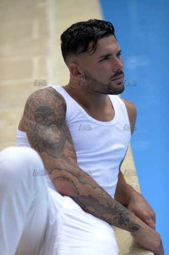 model_1379, 20s, Profil, profile, perfil, Verträumt, dreaming, rêvant, soñando, Unterhemd, Trägerhemd, Muskelshirt, Tanktop, débardeur, camiseta, hautnah, close, tight, serré, apretado, cerca, Ruhe, Entspannung, rest, relaxation, repos, détente, descanso, relajamiento, Schatten, shadow, ombre, sombra, sonnenbaden, sun, tanning, bask, lézarder, tomar, sol, geniessen, enjoy, réjouir, savourer, disfrutar, Pose, Posing, pose, poser, posa, posar, arm, bras, brazo, Leinen, linen, lien, toile, lienzo, lino, Hose, trousers, pantalons, pantalones, Kontrast, contrast, contraste, weiss, white, blanc, blanco, mauer, wand, wall, mur, muraille, paroi, pared, muro, wasser, water, eau, agua, schwimmbecken, schwimmbad, pool, piscine, piscina, blau, blue, bleu, azúl, gesichtsbehaarung, bart, schnauz, schnauzer, drei, tage, bart, facial, hair, pilosité, faciale, moustache, barbe, barbouze, barba, bigote, pose, posing, pose, poser, posa, posar, schatten, shadow, ombre, sombra, kontrast, contrast, contraste, nass, wet, mouillé, mojado, Tätowierung, tattoo, tatouage, tatuaje, allein, alone, seul, solo, aussen, draussen, outdoor, outside, exterior, external, extérieur, fuera, athlet, athlete, athlète, atleta, athletisch, athletic, athlétique, atlético, bodybuilder, body, builder, muscleman, kraftsportler, muskelmann, culturiste, culturista, cachas, mann, man, male, mâle, homme, hombre, macho, boy, guy, stud, hunk, dude, mec, chico, form, shape, forme, forma, haut, skin, peau, piel, körperlich, physical, corporelle, corporal, männlichkeit, masculinity, masculinité, virilité, masculinidad, virilidad, modell, model, modèle, modelo, muskel, muscle, musculo, muskulös, muscular, musclé, musculoso, sinnlichkeit, sensuality, sensualité, sensualidad, voluptuosidad, caucasian, caucasien, caucásico, mediteran, mediterranean, méditérranéen, mediteraneo, italo,