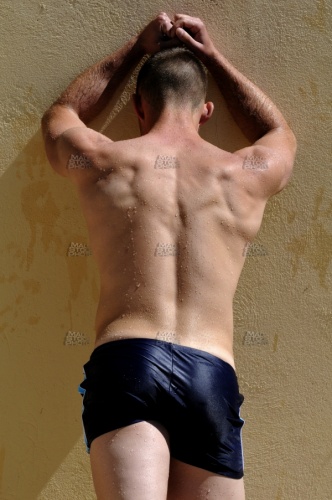 Model_1390, 20s, Waschbrettbauch, six, pack, Sixpack, sickpacks, abdominals, abs, abdominaux, abdominales, Brust, Brustkorb, Brustmuskulatur, chest, pecs, pectoraux, pectorales, Wassertropfen, waterdrop, goutte, eau, gota, agua, Pose, Posing, pose, poser, posa, posar, Schatten, shadow, ombre, sombra, Sonnenbräune, sun, tan, bronzage, bronceado, arm, bras, brazo, Oberkörper, nackt, shirtless, topless, torse, nu, busto, desnudo, Kontrast, contrast, contraste, arm, bras, brazo, nass, wet, mouillé, mojado, Badehose, badeanzug, swimwear, sim, wear, swimming, trunks, suit, maillot, bain, trusa, baño, mauer, wand, wall, mur, muraille, paroi, pared, muro, allein, alone, seul, solo, aussen, draussen, outdoor, outside, exterior, external, extérieur, fuera, athlet, athlete, athlète, atleta, athletisch, athletic, athlétique, atlético, Bodybuilder, body, builder, muscleman, Kraftsportler, Muskelmann, culturiste, culturista, cachas, mann, man, male, mâle, homme, hombre, macho, boy, guy, stud, hunk, dude, mec, chico, form, shape, forme, forma, haut, skin, peau, piel, körperlich, physical, corporelle, corporal, männlichkeit, masculinity, masculinité, virilité, masculinidad, virilidad, modell, model, modèle, modelo, muskel, muscle, musculo, muskulös, muscular, musclé, musculoso, sinnlichkeit, sensuality, sensualité, sensualidad, voluptuosidad, caucasian, caucasien, caucásico,
