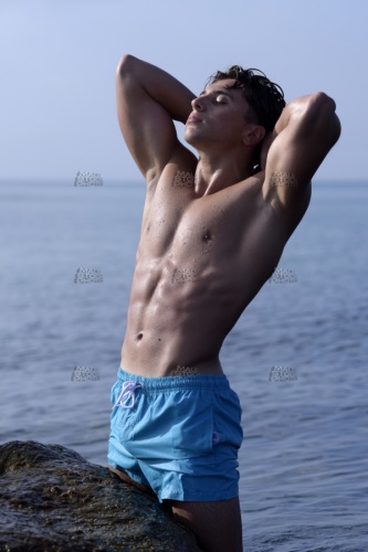 model_1408, 20s, geniessen, enjoy, réjouir, savourer, disfrutar, Wassertropfen, waterdrop, goutte, eau, gota, agua, nass, wet, mouillé, mojado, Badehose, badeanzug, swimwear, sim, wear, swimming, trunks, suit, maillot, bain, trusa, baño, blau, blue, bleu, azúl, shorts, brust, brustkorb, brustmuskulatur, chest, pecs, pectoraux, pectorales, waschbrettbauch, six, pack, sixpack, sickpacks, abdominals, abs, abdominaux, abdominales, pose, posing, pose, poser, posa, posar, kontrast, contrast, contraste, schatten, shadow, ombre, sombra, wasser, water, eau, agua, meer, sea, mer, mar, Felsen, rock, rocher, roca, horizont, horizon, horizonte, oberkörper, nackt, shirtless, topless, torse, nu, busto, desnudo, allein, alone, seul, solo, aussen, draussen, outdoor, outside, exterior, external, extérieur, fuera, athlet, athlete, athlète, atleta, athletisch, athletic, athlétique, atlético, bodybuilder, body, builder, muscleman, kraftsportler, muskelmann, culturiste, culturista, cachas, mann, man, male, mâle, homme, hombre, macho, boy, guy, stud, hunk, dude, mec, chico, form, shape, forme, forma, haut, skin, peau, piel, körperlich, physical, corporelle, corporal, männlichkeit, masculinity, masculinité, virilité, masculinidad, virilidad, modell, model, modèle, modelo, muskel, muscle, musculo, muskulös, muscular, musclé, musculoso, sinnlichkeit, sensuality, sensualité, sensualidad, voluptuosidad, caucasian, caucasien, caucásico,