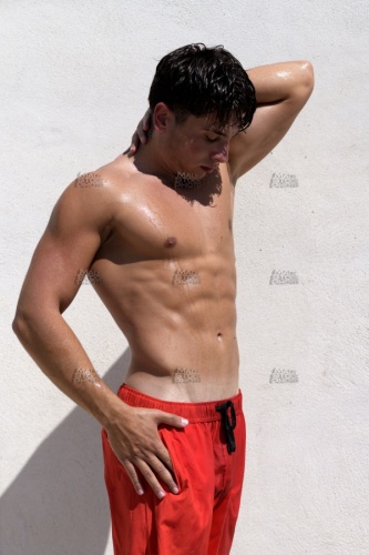| model_1408, 20s, Profil, profile, perfil, nass, wet, Schweiss, sweat, sueur, sudor, Pose, Posing, pose, poser, posa, posar, Waschbrettbauch, six, pack, Sixpack, sickpacks, abdominals, abs, abdominaux, abdominales, Brust, Brustkorb, Brustmuskulatur, chest, pecs, pectoraux, pectorales, Wassertropfen, waterdrop, goutte, eau, gota, agua, Pose, Posing, pose, poser, posa, posar, Schatten, shadow, ombre, sombra, Sonnenbräune, sun, tan, bronzage, bronceado, arm, bras, brazo, Oberkörper, nackt, shirtless, topless, torse, nu, busto, desnudo, Kontrast, contrast, contraste, mouillé, mojado, Badehose, badeanzug, swimwear, sim, wear, swimming, trunks, suit, maillot, bain, trusa, baño, rot, red, rouge, rojo, mauer, wand, wall, mur, muraille, paroi, pared, muro, weiss, white, blanc, blanco, allein, alone, seul, solo, aussen, draussen, outdoor, outside, exterior, external, extérieur, fuera, athlet, athlete, athlète, atleta, athletisch, athletic, athlétique, atlético, bodybuilder, body, builder, muscleman, kraftsportler, muskelmann, culturiste, culturista, cachas, mann, man, male, mâle, homme, hombre, macho, boy, guy, stud, hunk, dude, mec, chico, form, shape, forme, forma, haut, skin, peau, piel, körperlich, physical, corporelle, corporal, männlichkeit, masculinity, masculinité, virilité, masculinidad, virilidad, modell, model, modèle, modelo, muskel, muscle, musculo, muskulös, muscular, musclé, musculoso, sinnlichkeit, sensuality, sensualité, sensualidad, voluptuosidad, caucasian, caucasien, caucásico, | |
