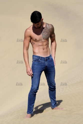 Model_1403, 20s, Verträumt, dreaming, rêvant, soñando, Brust, Brustkorb, Brustmuskulatur, chest, pecs, pectoraux, pectorales, Waschbrettbauch, six, pack, Sixpack, sickpacks, abdominals, abs, abdominaux, abdominales, Tätowierung, tattoo, tatouage, tatuaje, kontrast, contrast, contraste, schatten, shadow, ombre, sombra, blau, blue, bleu, azúl, jeans, jean, vaqueros, hose, trousers, pantalons, pantalones, oberkörper, nackt, shirtless, topless, torse, nu, busto, desnudo, düne, dune, duna, sand, sable, arena, gesichtsbehaarung, bart, schnauz, schnauzer, drei, tage, bart, facial, hair, pilosité, faciale, moustache, barbe, barbouze, barba, bigote, Oberkörper, nackt, shirtless, topless, torse, nu, busto, desnudo, aussen, draussen, outdoor, outside, exterior, external, extérieur, fuera, allein, alone, seul, solo, aussen, draussen, outdoor, outside, exterior, external, extérieur, fuera, athlet, athlete, athlète, atleta, athletisch, athletic, athlétique, atlético, mann, man, male, mâle, homme, hombre, macho, erotik, eroticism, érotisme, charme, erotismo, haut, skin, peau, piel, modell, model, modèle, modelo, pose, posing, pose, poser, posa, posar, sinnlichkeit, sensuality, sensualité, sensualidad, voluptuosidad, kaukasisch, caucasian, caucasien, caucasiano, mediteran, mediterranean, méditérranéen, mediteraneo,