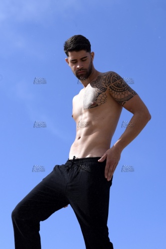 Model_1403, 20s, Horizont, horizon, horizonte, Tätowierung, tattoo, tatouage, tatuaje, kontrast, contrast, contraste, schatten, shadow, ombre, sombra, blau, blue, bleu, azúl, Leinen, linen, lien, toile, lienzo, lino, hose, trousers, pantalons, pantalones, oberkörper, nackt, shirtless, topless, torse, nu, busto, desnudo, gesichtsbehaarung, bart, schnauz, schnauzer, drei, tage, bart, facial, hair, pilosité, faciale, moustache, barbe, barbouze, barba, bigote, Oberkörper, nackt, shirtless, topless, torse, nu, busto, desnudo, Brust, Brustkorb, Brustmuskulatur, chest, pecs, pectoraux, pectorales, Waschbrettbauch, six, pack, Sixpack, sickpacks, abdominals, abs, abdominaux, abdominales, aussen, draussen, outdoor, outside, exterior, external, extérieur, fuera, allein, alone, seul, solo, aussen, draussen, outdoor, outside, exterior, external, extérieur, fuera, athlet, athlete, athlète, atleta, athletisch, athletic, athlétique, atlético, mann, man, male, mâle, homme, hombre, macho, erotik, eroticism, érotisme, charme, erotismo, haut, skin, peau, piel, modell, model, modèle, modelo, pose, posing, pose, poser, posa, posar, sinnlichkeit, sensuality, sensualité, sensualidad, voluptuosidad, kaukasisch, caucasian, caucasien, caucasiano, mediteran, mediterranean, méditérranéen, mediteraneo,
