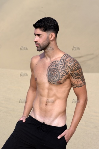 Model_1403, 20s, Profil, profile, perfil, Sand, sable, arena, Tätowierung, tattoo, tatouage, tatuaje, kontrast, contrast, contraste, schatten, shadow, ombre, sombra, blau, blue, bleu, azúl, Leinen, linen, lien, toile, lienzo, lino, hose, trousers, pantalons, pantalones, oberkörper, nackt, shirtless, topless, torse, nu, busto, desnudo, gesichtsbehaarung, bart, schnauz, schnauzer, drei, tage, bart, facial, hair, pilosité, faciale, moustache, barbe, barbouze, barba, bigote, Oberkörper, nackt, shirtless, topless, torse, nu, busto, desnudo, Brust, Brustkorb, Brustmuskulatur, chest, pecs, pectoraux, pectorales, Waschbrettbauch, six, pack, Sixpack, sickpacks, abdominals, abs, abdominaux, abdominales, aussen, draussen, outdoor, outside, exterior, external, extérieur, fuera, allein, alone, seul, solo, aussen, draussen, outdoor, outside, exterior, external, extérieur, fuera, athlet, athlete, athlète, atleta, athletisch, athletic, athlétique, atlético, mann, man, male, mâle, homme, hombre, macho, erotik, eroticism, érotisme, charme, erotismo, haut, skin, peau, piel, modell, model, modèle, modelo, pose, posing, pose, poser, posa, posar, sinnlichkeit, sensuality, sensualité, sensualidad, voluptuosidad, kaukasisch, caucasian, caucasien, caucasiano, mediteran, mediterranean, méditérranéen, mediteraneo,