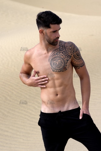 Model_1403, 20s, Profil, profile, perfil, Sand, sable, arena, Tätowierung, tattoo, tatouage, tatuaje, kontrast, contrast, contraste, schatten, shadow, ombre, sombra, blau, blue, bleu, azúl, Leinen, linen, lien, toile, lienzo, lino, hose, trousers, pantalons, pantalones, oberkörper, nackt, shirtless, topless, torse, nu, busto, desnudo, gesichtsbehaarung, bart, schnauz, schnauzer, drei, tage, bart, facial, hair, pilosité, faciale, moustache, barbe, barbouze, barba, bigote, Oberkörper, nackt, shirtless, topless, torse, nu, busto, desnudo, Brust, Brustkorb, Brustmuskulatur, chest, pecs, pectoraux, pectorales, Waschbrettbauch, six, pack, Sixpack, sickpacks, abdominals, abs, abdominaux, abdominales, aussen, draussen, outdoor, outside, exterior, external, extérieur, fuera, allein, alone, seul, solo, aussen, draussen, outdoor, outside, exterior, external, extérieur, fuera, athlet, athlete, athlète, atleta, athletisch, athletic, athlétique, atlético, mann, man, male, mâle, homme, hombre, macho, erotik, eroticism, érotisme, charme, erotismo, haut, skin, peau, piel, modell, model, modèle, modelo, pose, posing, pose, poser, posa, posar, sinnlichkeit, sensuality, sensualité, sensualidad, voluptuosidad, kaukasisch, caucasian, caucasien, caucasiano, mediteran, mediterranean, méditérranéen, mediteraneo,