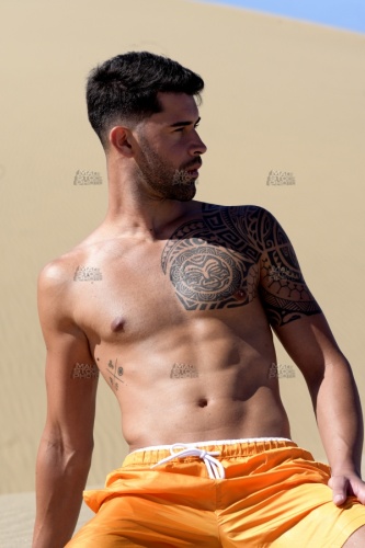 model_1403, 20s, Profil, profile, perfil, Orange, naranja, Ruhe, Entspannung, rest, relaxation, repos, détente, descanso, relajamiento, tätowierung, tattoo, tatouage, tatuaje, kontrast, contrast, contraste, schatten, shadow, ombre, sombra, shorts, badehose, badeanzug, swimwear, sim, wear, swimming, trunks, suit, maillot, bain, trusa, baño, oberkörper, nackt, shirtless, topless, torse, nu, busto, desnudo, düne, dune, duna, sand, sable, arena, gesichtsbehaarung, bart, schnauz, schnauzer, drei, tage, bart, facial, hair, pilosité, faciale, moustache, barbe, barbouze, barba, bigote, oberkörper, nackt, shirtless, topless, torse, nu, busto, desnudo, brust, brustkorb, brustmuskulatur, chest, pecs, pectoraux, pectorales, waschbrettbauch, six, pack, sixpack, sickpacks, abdominals, abs, abdominaux, abdominales, aussen, draussen, outdoor, outside, exterior, external, extérieur, fuera, allein, alone, seul, solo, aussen, draussen, outdoor, outside, exterior, external, extérieur, fuera, athlet, athlete, athlète, atleta, athletisch, athletic, athlétique, atlético, mann, man, male, mâle, homme, hombre, macho, erotik, eroticism, érotisme, charme, erotismo, haut, skin, peau, piel, modell, model, modèle, modelo, pose, posing, pose, poser, posa, posar, sinnlichkeit, sensuality, sensualité, sensualidad, voluptuosidad, kaukasisch, caucasian, caucasien, caucasiano, mediteran, mediterranean, méditérranéen, mediteraneo,